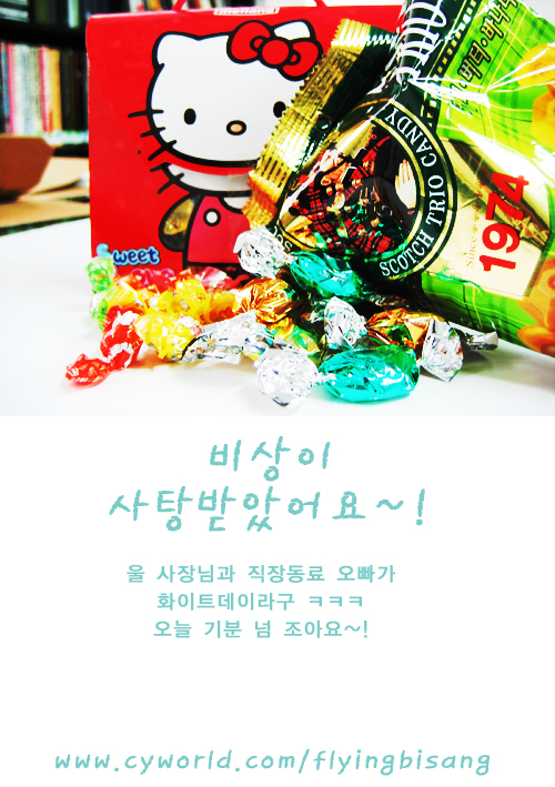 나두 커피맛.. ㆅ 근데 참 부럽네요.. 남자친구가 없으면 직장생활하면서 저런 기쁨이라도 누리지 못할망정,, 사탕 구경도못해봤네.. ㅜ_ㅜ