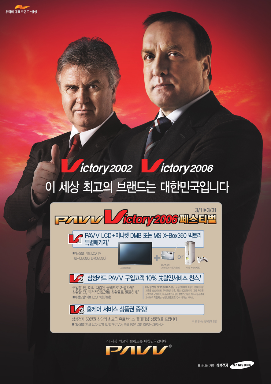 삼성전자 파브광고입니다. 히딩크감독과 아드보카드 감독의 카리스마를 엿볼수 있는 ...