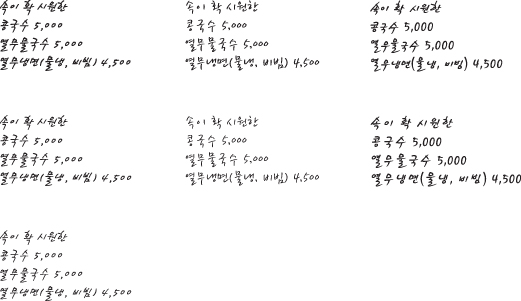 > 콩국수 5,000