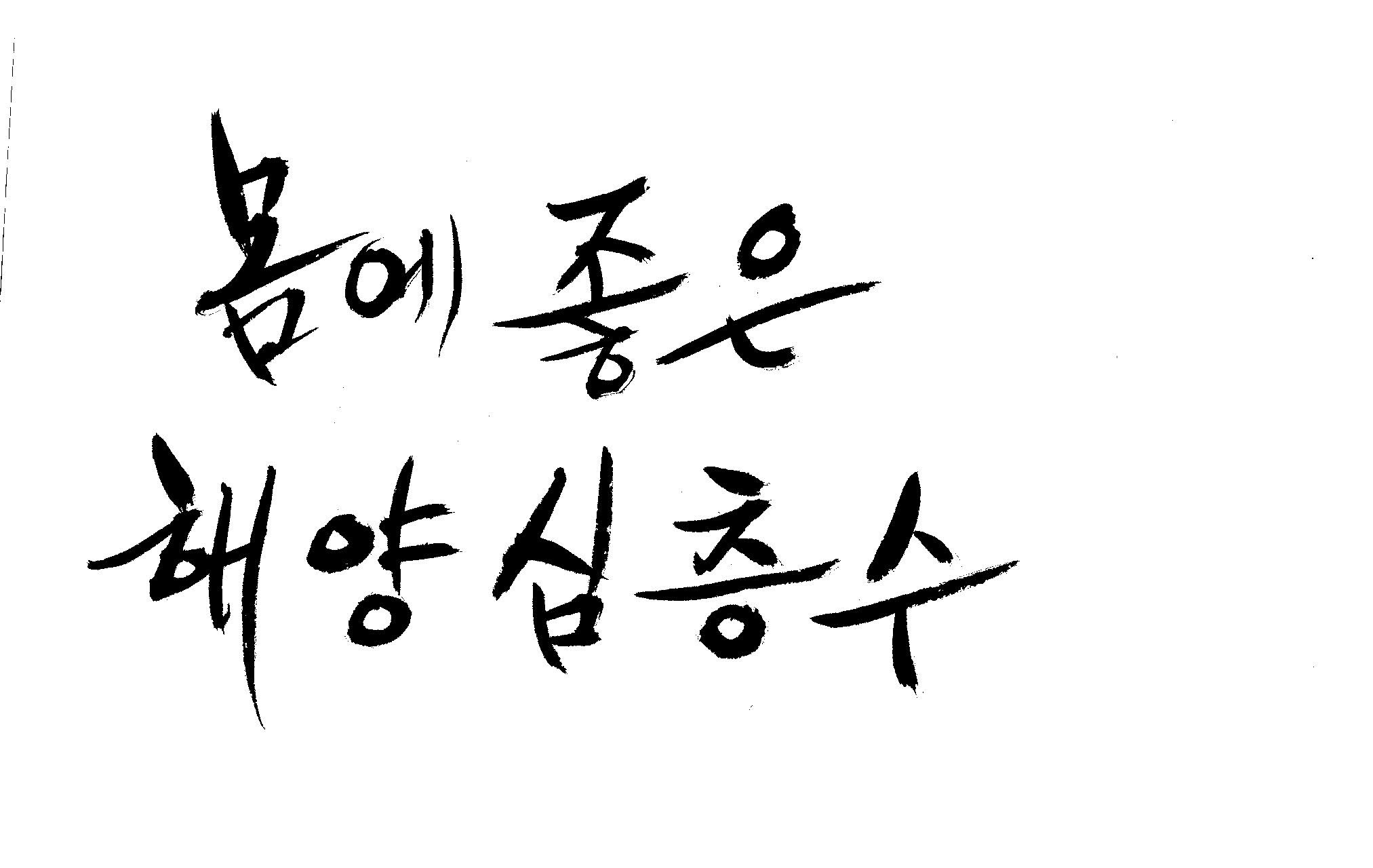캘리 부탁드려도 될지~ 김철호 일반 1 8221 2009.01.20 00:54 > > > > > > > > > > > > > > 안녕하세요~ > > > > 항상 좋은 정보 많이 보고 가고 있습니다. > > > > 감사합니다~ > > > > 캘리 좀 부탁드려도 될지 모르겠어요. > > > > ' 몸에좋은(愛), 해양심층수' > > > > 바쁘신데 부탁드려요~ > > > > 눈길에 안전운전하시구요~ ^^ > > > > > > > > > >